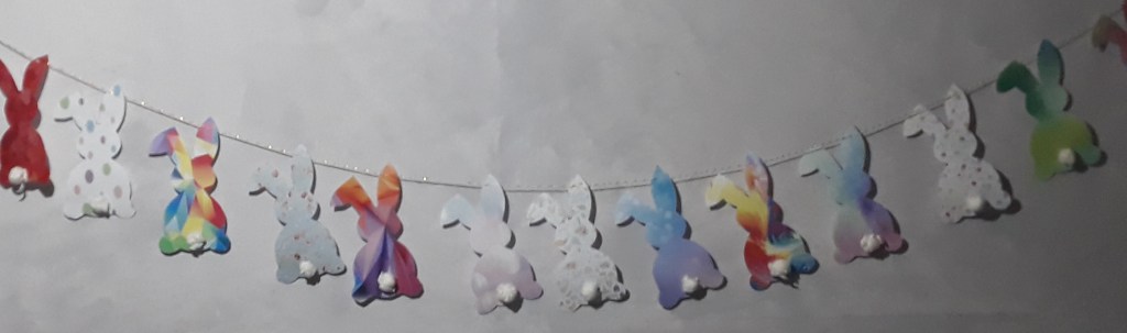 Je vous propose, puisque le week-end Pascal arrive à grands pas, de réaliser une petite banderole pour fêter dignement le retour des cloches (de Pâques bien sûr!) qui, les petites veinardes, sont les seules à avoir le droit de voyager…